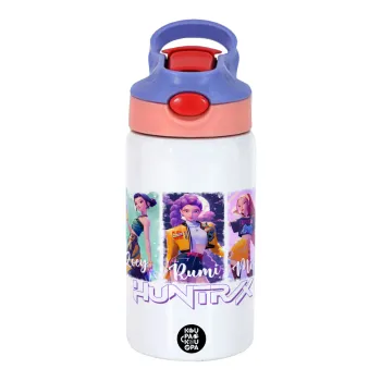 HUNTR/X K-pop girl group, Παιδικό παγούρι θερμό, ανοξείδωτο, με καλαμάκι ασφαλείας, ροζ/μωβ (350ml)