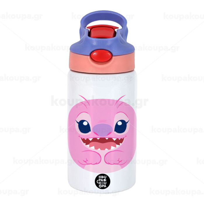 Lilo & Stitch Angel pink, Παιδικό παγούρι θερμό, ανοξείδωτο, με καλαμάκι ασφαλείας, ροζ/μωβ (350ml)
