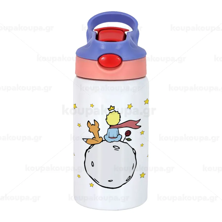 Little prince, Παιδικό παγούρι θερμό, ανοξείδωτο, με καλαμάκι ασφαλείας, ροζ/μωβ (350ml)