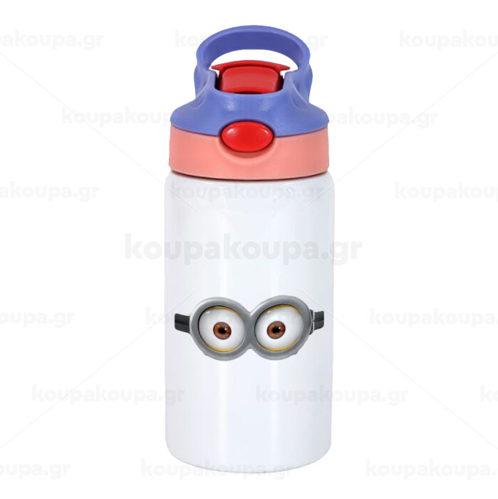 Minions, Παιδικό παγούρι θερμό, ανοξείδωτο, με καλαμάκι ασφαλείας, ροζ/μωβ (350ml)