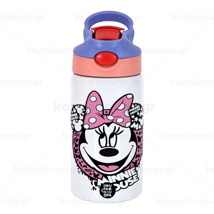 Minnie mouse, Παιδικό παγούρι θερμό, ανοξείδωτο, με καλαμάκι ασφαλείας, ροζ/μωβ (350ml)