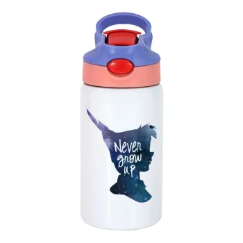 Never Grow UP, Παιδικό παγούρι θερμό, ανοξείδωτο, με καλαμάκι ασφαλείας, ροζ/μωβ (350ml)