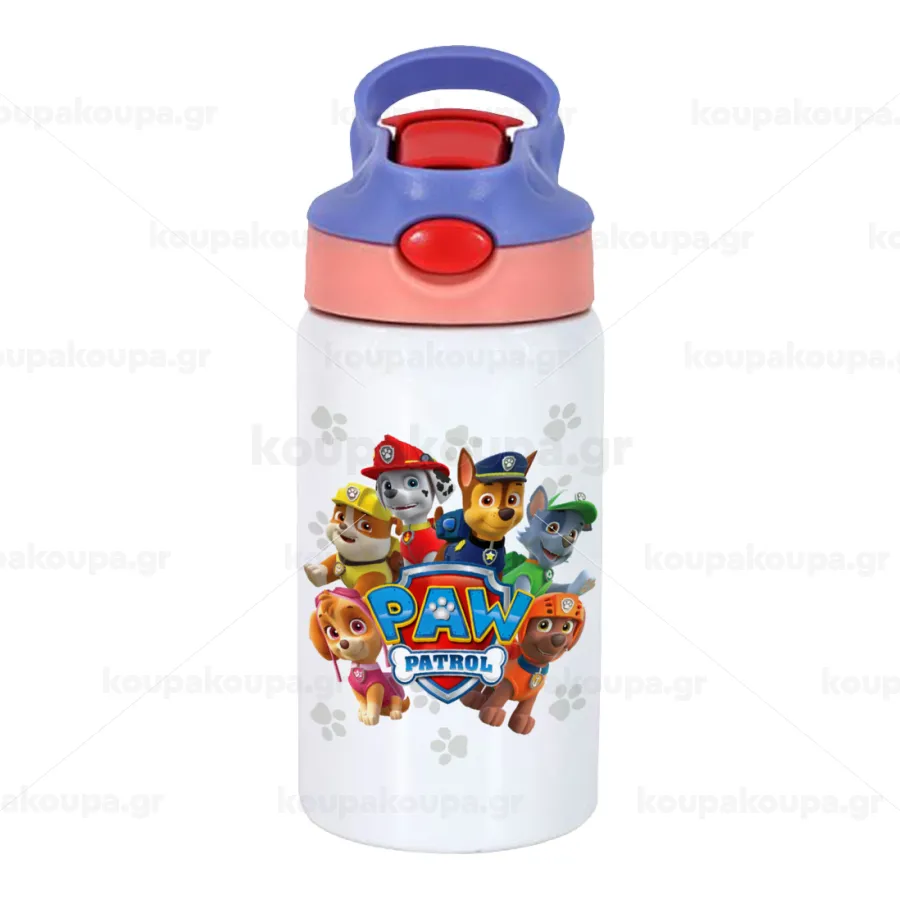 PAW patrol, τα κουτάβια, Παιδικό παγούρι θερμό, ανοξείδωτο, με καλαμάκι ασφαλείας, ροζ/μωβ (350ml)
