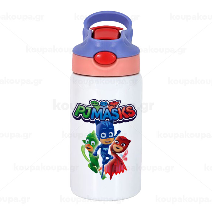 PJ masks, Παιδικό παγούρι θερμό, ανοξείδωτο, με καλαμάκι ασφαλείας, ροζ/μωβ (350ml)