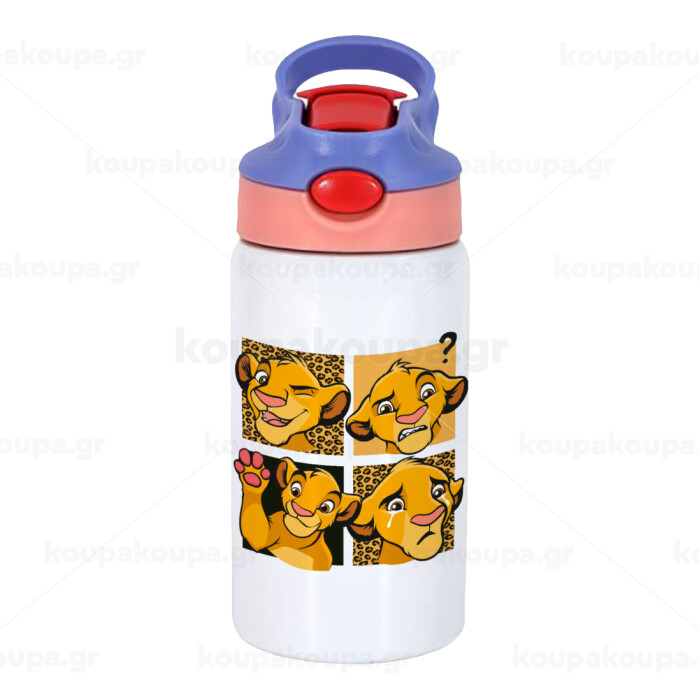 Simba, lion king, Παιδικό παγούρι θερμό, ανοξείδωτο, με καλαμάκι ασφαλείας, ροζ/μωβ (350ml)