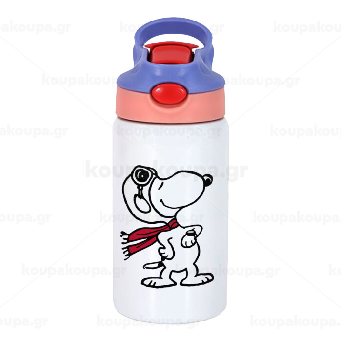 Snoopy ο πιλότος, Παιδικό παγούρι θερμό, ανοξείδωτο, με καλαμάκι ασφαλείας, ροζ/μωβ (350ml)