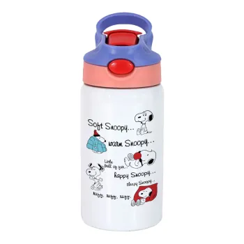 Snoopy manual, Παιδικό παγούρι θερμό, ανοξείδωτο, με καλαμάκι ασφαλείας, ροζ/μωβ (350ml)