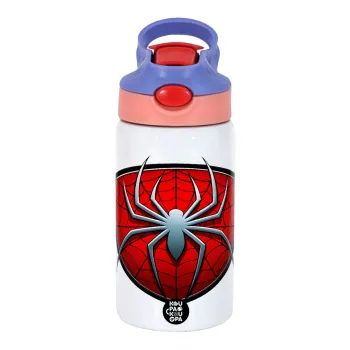 Spider-man, Παιδικό παγούρι θερμό, ανοξείδωτο, με καλαμάκι ασφαλείας, ροζ/μωβ (350ml)