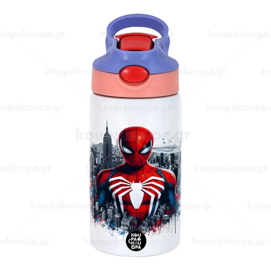 Spiderman City, Παιδικό παγούρι θερμό, ανοξείδωτο, με καλαμάκι ασφαλείας, ροζ/μωβ (350ml)