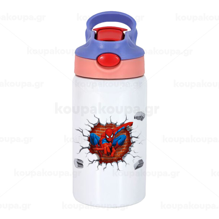Spiderman wall, Παιδικό παγούρι θερμό, ανοξείδωτο, με καλαμάκι ασφαλείας, ροζ/μωβ (350ml)