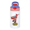 Super Wings, Παιδικό παγούρι θερμό, ανοξείδωτο, με καλαμάκι ασφαλείας, ροζ/μωβ (350ml)