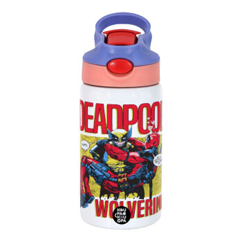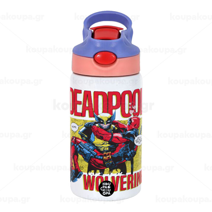 Superhero Deadpool Wolverine, Παιδικό παγούρι θερμό, ανοξείδωτο, με καλαμάκι ασφαλείας, ροζ/μωβ (350ml)