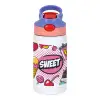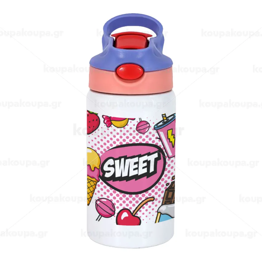 SWEET, Παιδικό παγούρι θερμό, ανοξείδωτο, με καλαμάκι ασφαλείας, ροζ/μωβ (350ml)