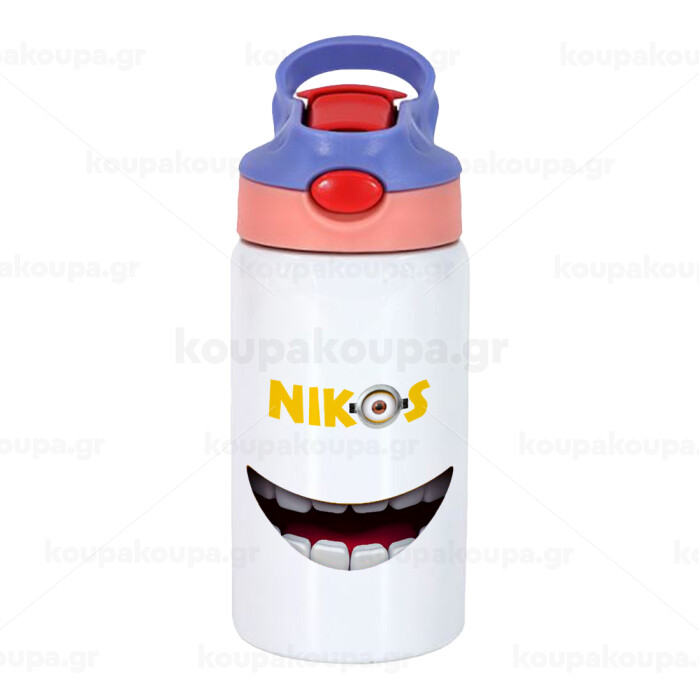 The minions, Παιδικό παγούρι θερμό, ανοξείδωτο, με καλαμάκι ασφαλείας, ροζ/μωβ (350ml)