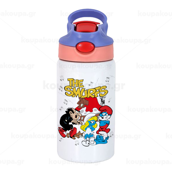 Τα στρουμφάκια, Παιδικό παγούρι θερμό, ανοξείδωτο, με καλαμάκι ασφαλείας, ροζ/μωβ (350ml)