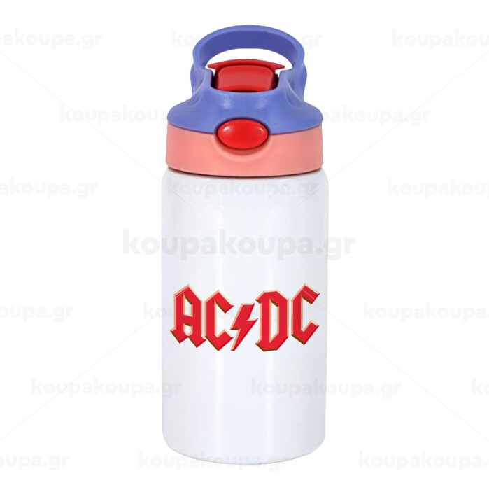 AC/DC, Παιδικό παγούρι θερμό, ανοξείδωτο, με καλαμάκι ασφαλείας, ροζ/μωβ (350ml)