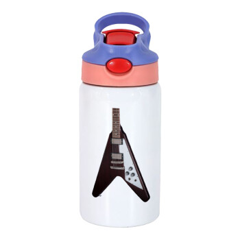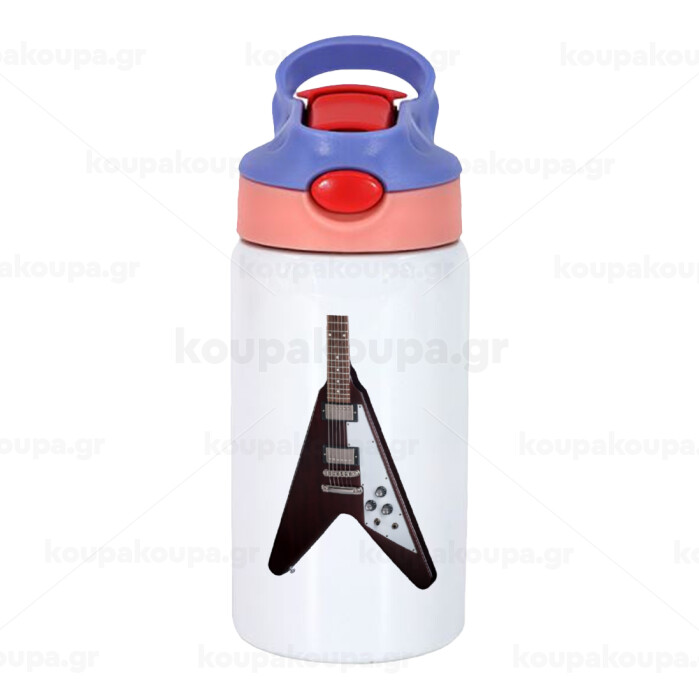 Guitar flying V, Παιδικό παγούρι θερμό, ανοξείδωτο, με καλαμάκι ασφαλείας, ροζ/μωβ (350ml)