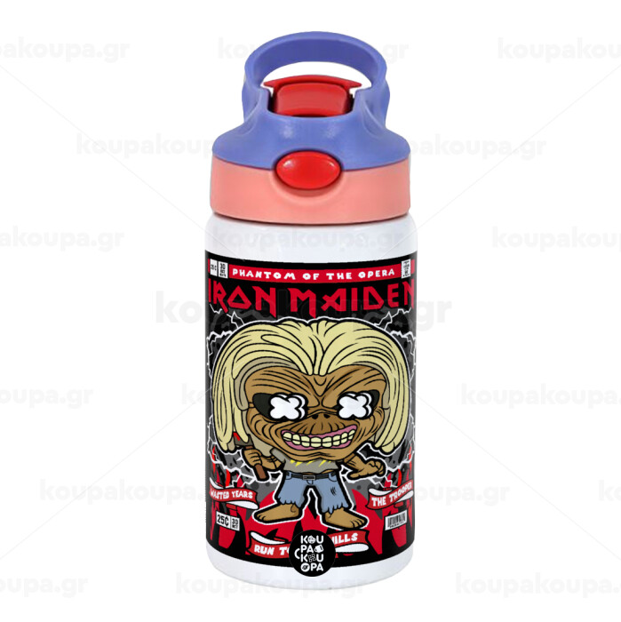 Iron maiden (eddie), Παιδικό παγούρι θερμό, ανοξείδωτο, με καλαμάκι ασφαλείας, ροζ/μωβ (350ml)