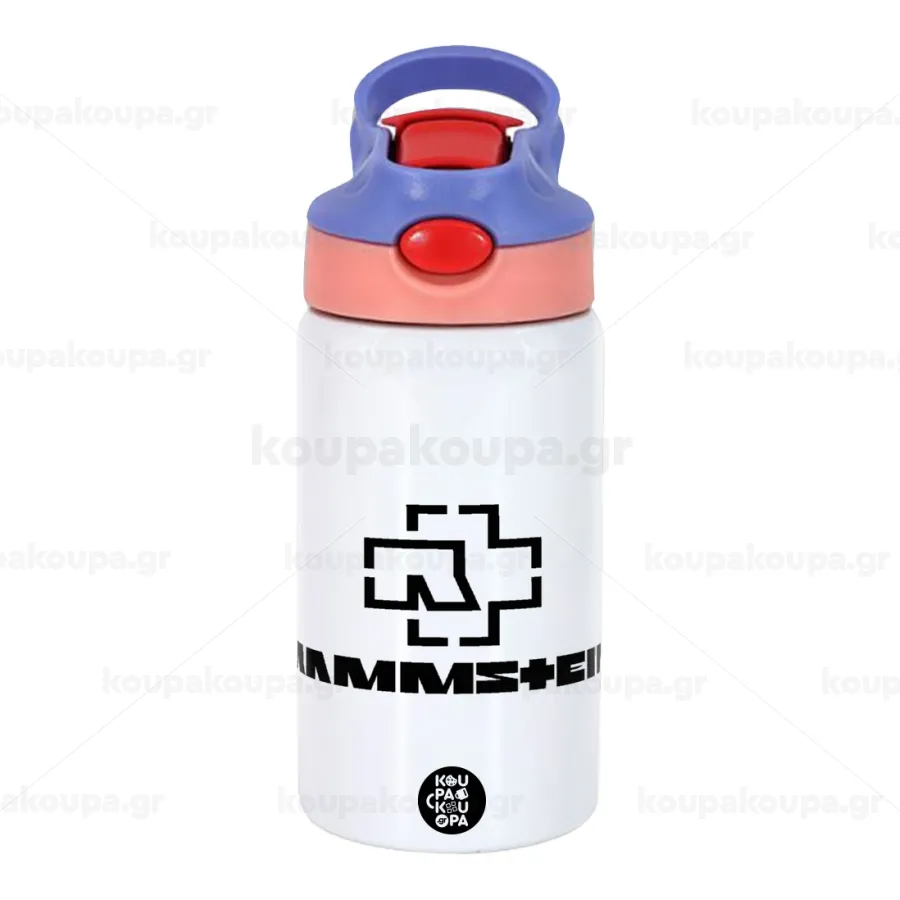 Rammstein, Παιδικό παγούρι θερμό, ανοξείδωτο, με καλαμάκι ασφαλείας, ροζ/μωβ (350ml)