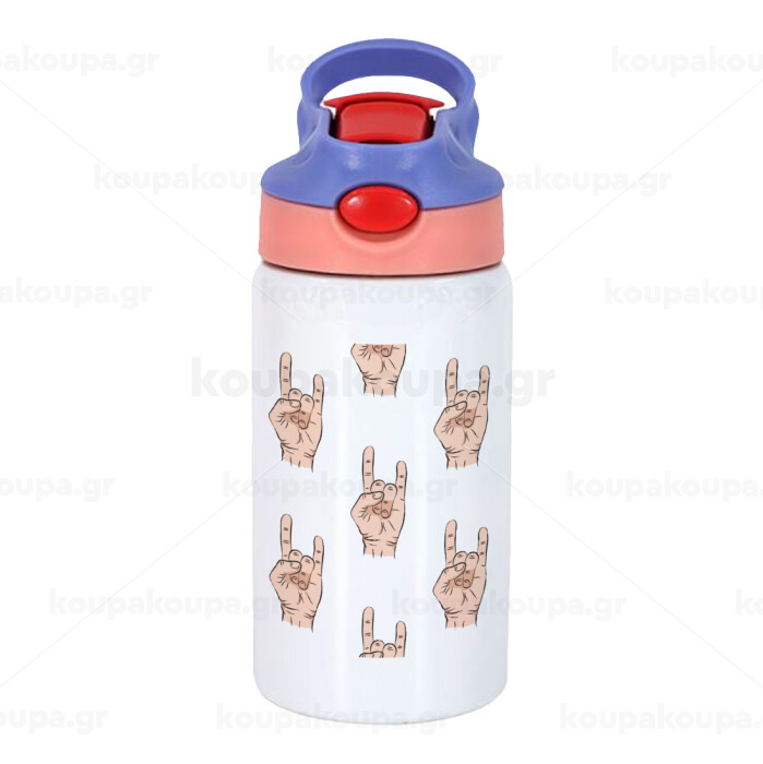 Rock hands, Παιδικό παγούρι θερμό, ανοξείδωτο, με καλαμάκι ασφαλείας, ροζ/μωβ (350ml)