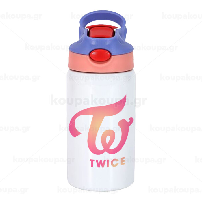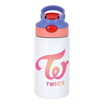Twice, Παιδικό παγούρι θερμό, ανοξείδωτο, με καλαμάκι ασφαλείας, ροζ/μωβ (350ml)