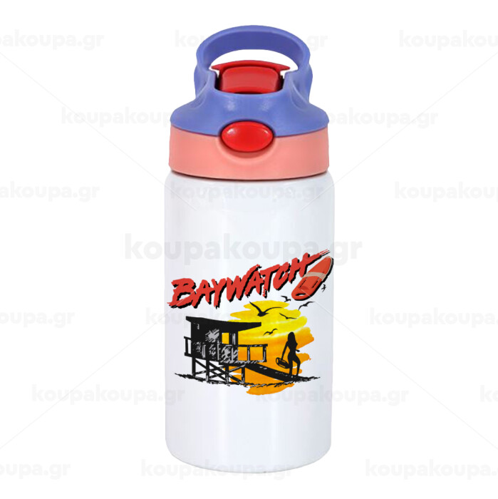 Baywatch, Παιδικό παγούρι θερμό, ανοξείδωτο, με καλαμάκι ασφαλείας, ροζ/μωβ (350ml)