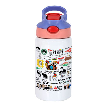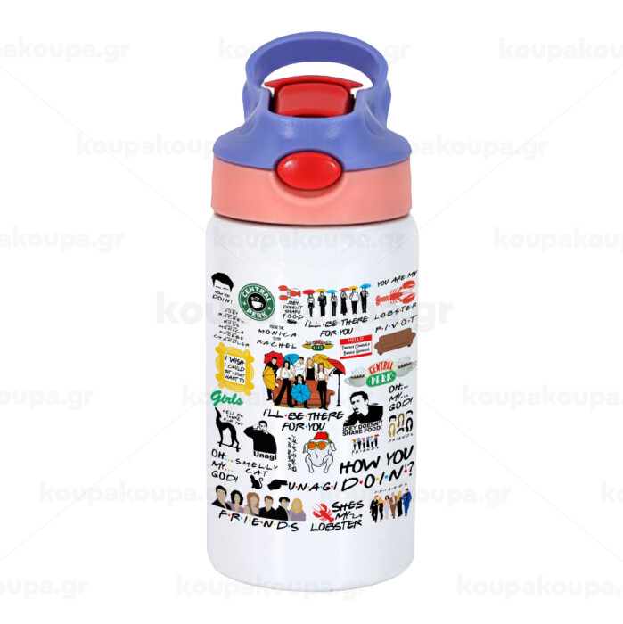 Friends, Παιδικό παγούρι θερμό, ανοξείδωτο, με καλαμάκι ασφαλείας, ροζ/μωβ (350ml)