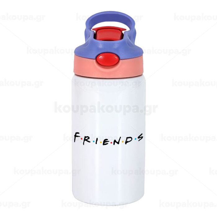 Friends, Παιδικό παγούρι θερμό, ανοξείδωτο, με καλαμάκι ασφαλείας, ροζ/μωβ (350ml)