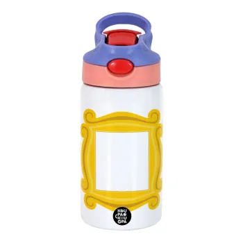 Friends frame, Παιδικό παγούρι θερμό, ανοξείδωτο, με καλαμάκι ασφαλείας, ροζ/μωβ (350ml)