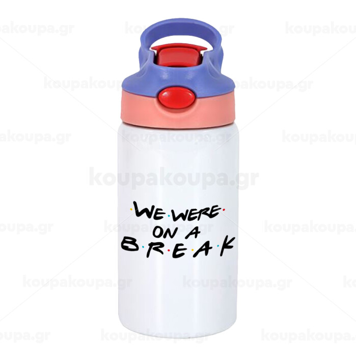 Friends we were on a break, Παιδικό παγούρι θερμό, ανοξείδωτο, με καλαμάκι ασφαλείας, ροζ/μωβ (350ml)