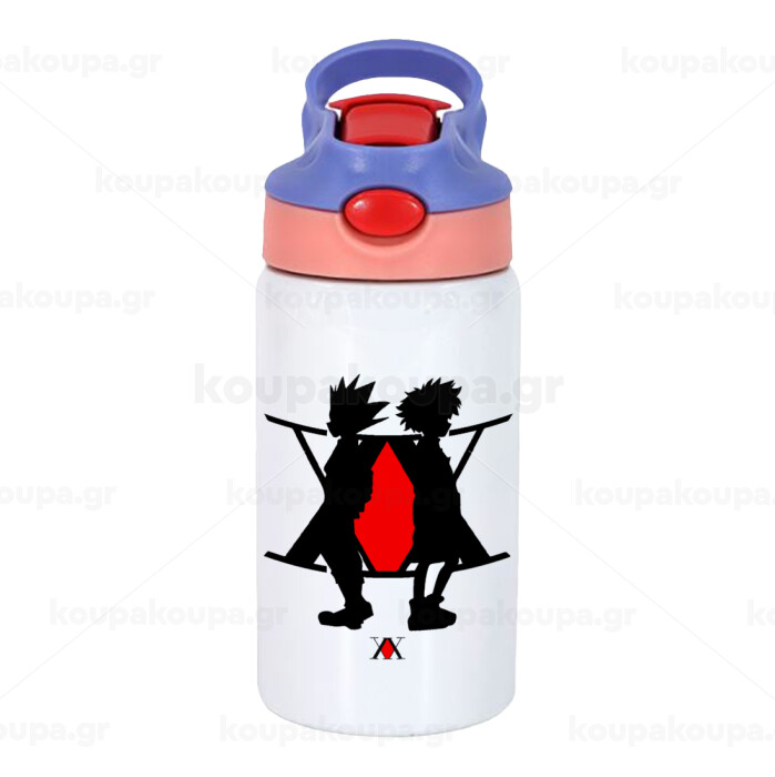 hunter x hunter, Παιδικό παγούρι θερμό, ανοξείδωτο, με καλαμάκι ασφαλείας, ροζ/μωβ (350ml)