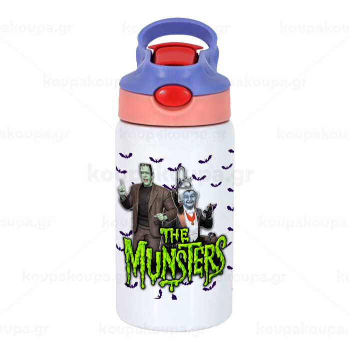 The munsters, Παιδικό παγούρι θερμό, ανοξείδωτο, με καλαμάκι ασφαλείας, ροζ/μωβ (350ml)