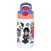 Wednesday and Enid Sinclair, Παιδικό παγούρι θερμό, ανοξείδωτο, με καλαμάκι ασφαλείας, ροζ/μωβ (350ml)