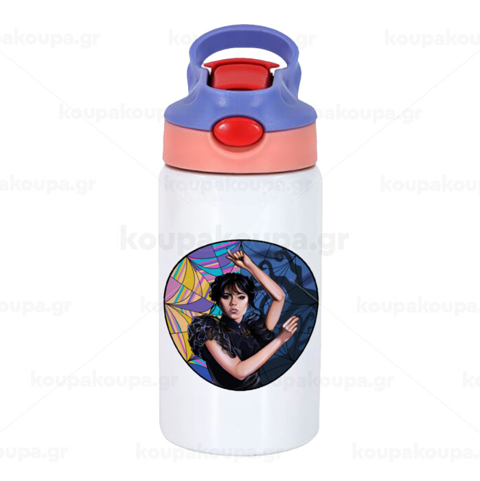 Wednesday dance, Παιδικό παγούρι θερμό, ανοξείδωτο, με καλαμάκι ασφαλείας, ροζ/μωβ (350ml)