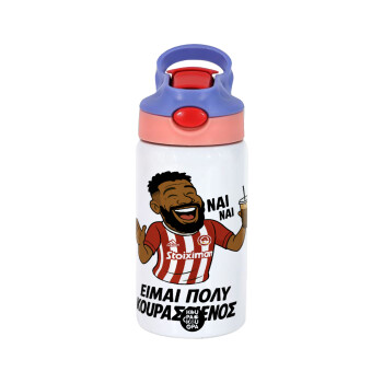 ΑΕΚ εμφάνιση, Παιδικό παγούρι θερμό, ανοξείδωτο, με καλαμάκι ασφαλείας, ροζ/μωβ (350ml)