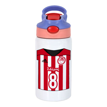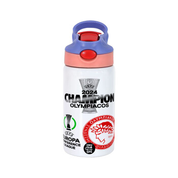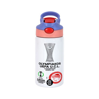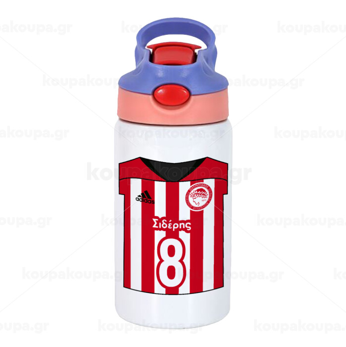 Ολυμπιακός εμφάνιση, Παιδικό παγούρι θερμό, ανοξείδωτο, με καλαμάκι ασφαλείας, ροζ/μωβ (350ml)