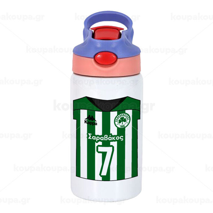 Παναθηναϊκός εμφάνιση, Παιδικό παγούρι θερμό, ανοξείδωτο, με καλαμάκι ασφαλείας, ροζ/μωβ (350ml)
