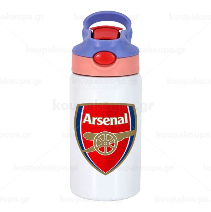 Arsenal, Παιδικό παγούρι θερμό, ανοξείδωτο, με καλαμάκι ασφαλείας, ροζ/μωβ (350ml)