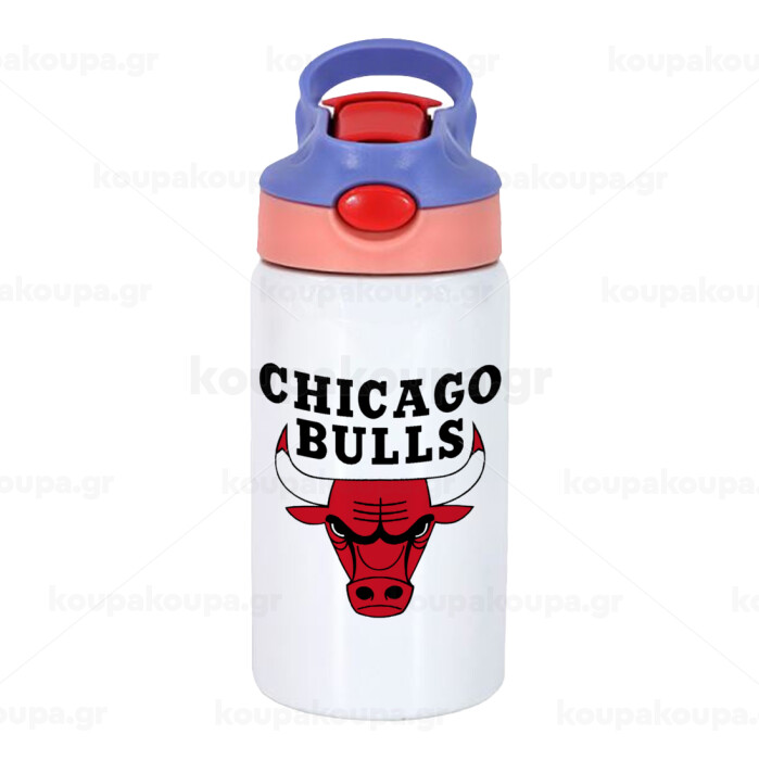 Chicago Bulls, Παιδικό παγούρι θερμό, ανοξείδωτο, με καλαμάκι ασφαλείας, ροζ/μωβ (350ml)