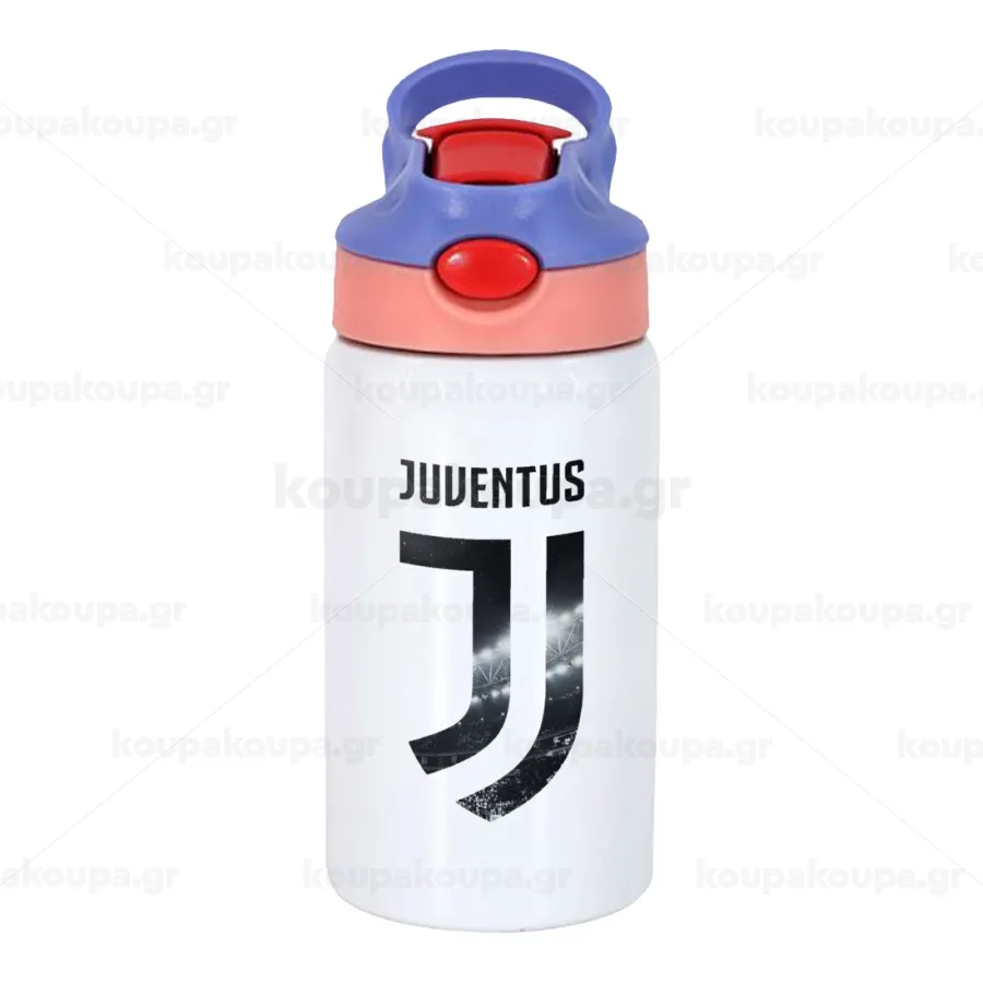 FC Juventus, Παιδικό παγούρι θερμό, ανοξείδωτο, με καλαμάκι ασφαλείας, ροζ/μωβ (350ml)