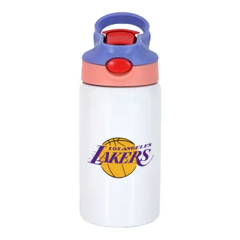 Lakers, Παιδικό παγούρι θερμό, ανοξείδωτο, με καλαμάκι ασφαλείας, ροζ/μωβ (350ml)