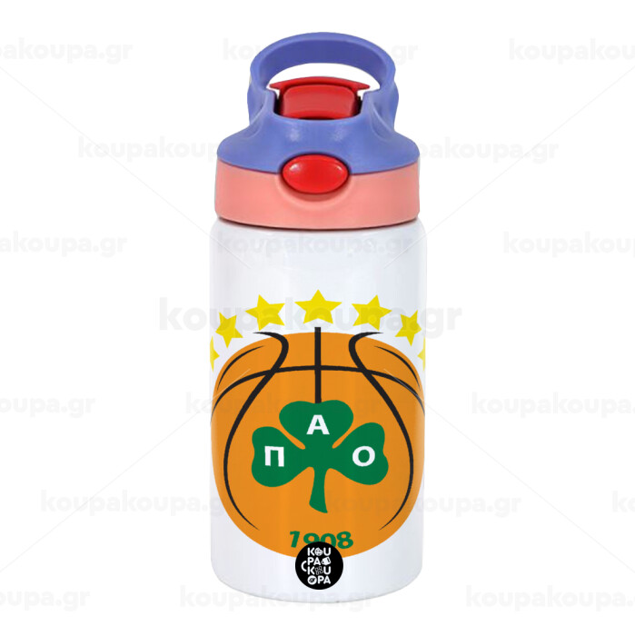 ΠΑΟ BC, Παιδικό παγούρι θερμό, ανοξείδωτο, με καλαμάκι ασφαλείας, ροζ/μωβ (350ml)