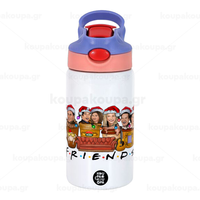 FRIENDS xmas, Παιδικό παγούρι θερμό, ανοξείδωτο, με καλαμάκι ασφαλείας, ροζ/μωβ (350ml)