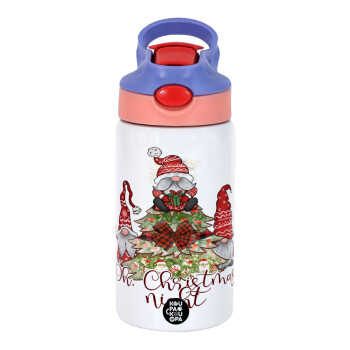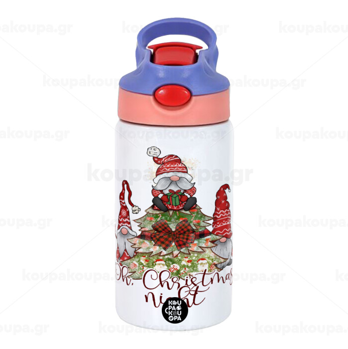 Oh Christmas Night, Παιδικό παγούρι θερμό, ανοξείδωτο, με καλαμάκι ασφαλείας, ροζ/μωβ (350ml)