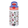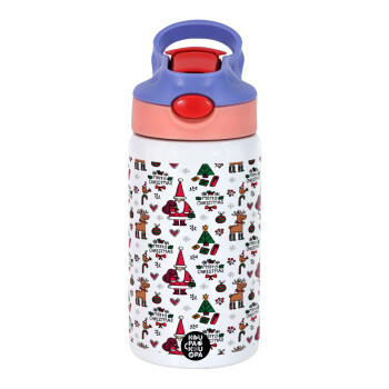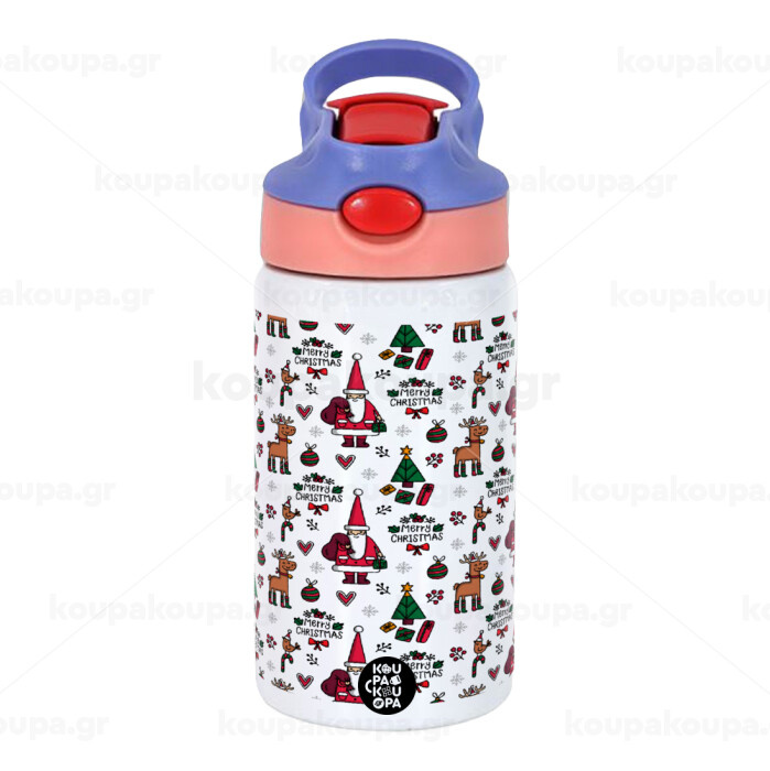 Santas, Deers & Trees, Παιδικό παγούρι θερμό, ανοξείδωτο, με καλαμάκι ασφαλείας, ροζ/μωβ (350ml)