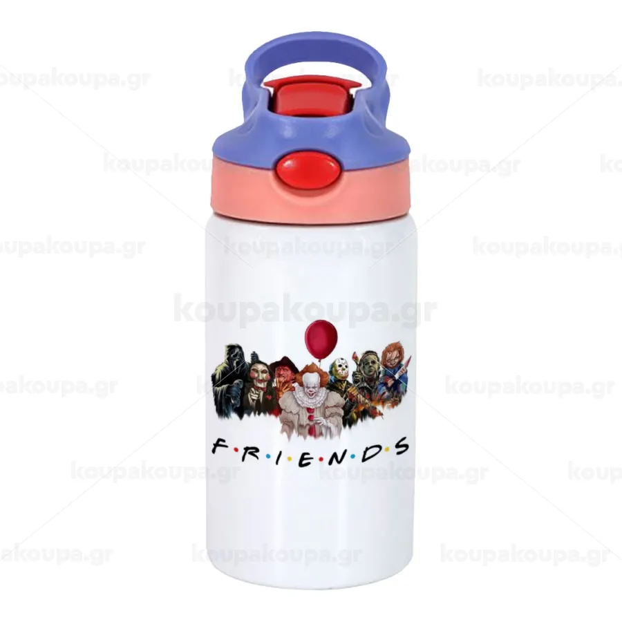 Halloween Friends, Παιδικό παγούρι θερμό, ανοξείδωτο, με καλαμάκι ασφαλείας, ροζ/μωβ (350ml)