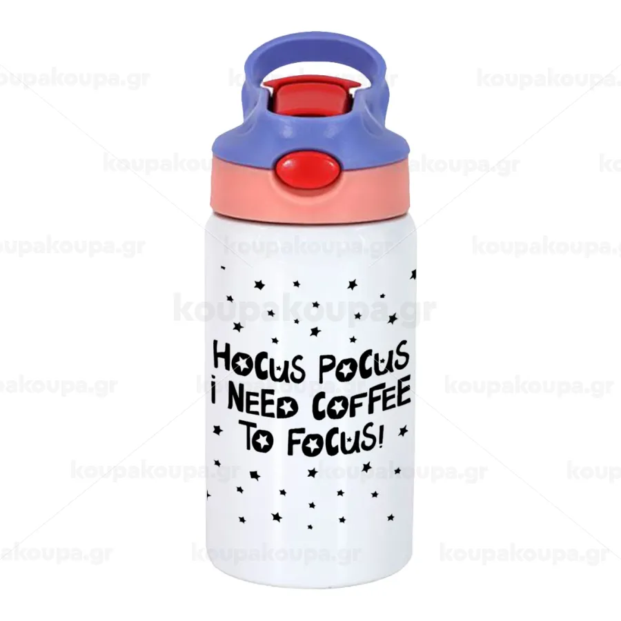 Hocus pocus i need coffee to focus - halloween, Παιδικό παγούρι θερμό, ανοξείδωτο, με καλαμάκι ασφαλείας, ροζ/μωβ (350ml)