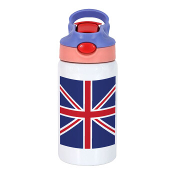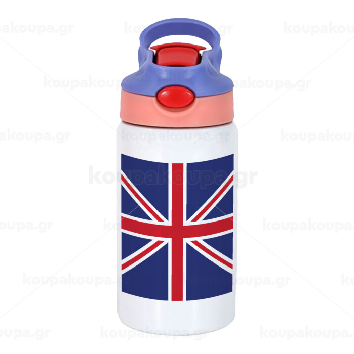 Σημαία Αγγλίας UK, Παιδικό παγούρι θερμό, ανοξείδωτο, με καλαμάκι ασφαλείας, ροζ/μωβ (350ml)