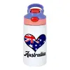 Australia flag, Παιδικό παγούρι θερμό, ανοξείδωτο, με καλαμάκι ασφαλείας, ροζ/μωβ (350ml)