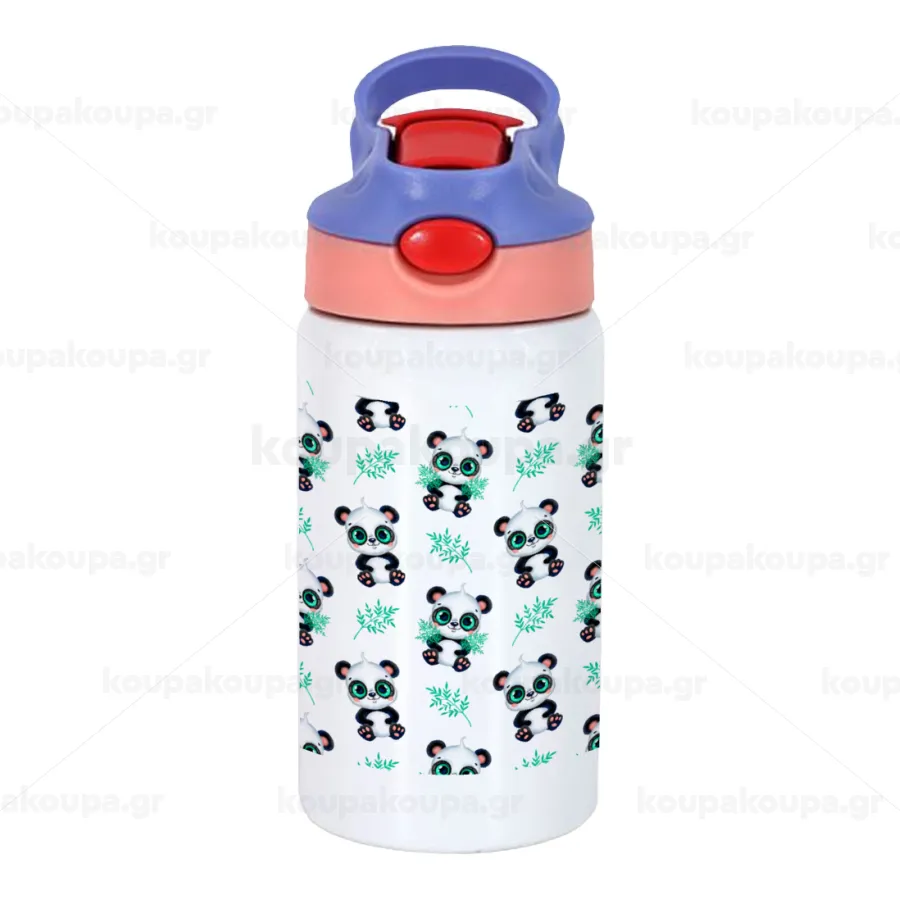 Panda, Παιδικό παγούρι θερμό, ανοξείδωτο, με καλαμάκι ασφαλείας, ροζ/μωβ (350ml)